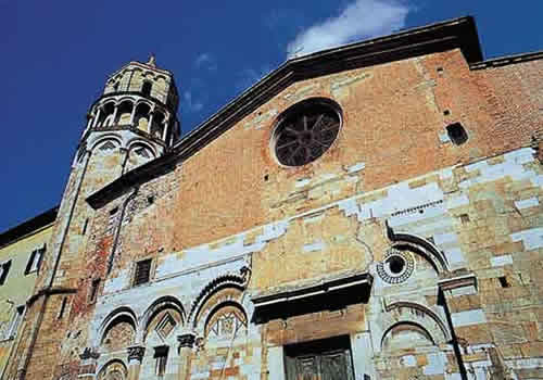 教堂,建于十一世纪,有一个大理石面对和双色调镶嵌彩瓷从罗马式披散派生而上部建成后,一个门面,是砖。
